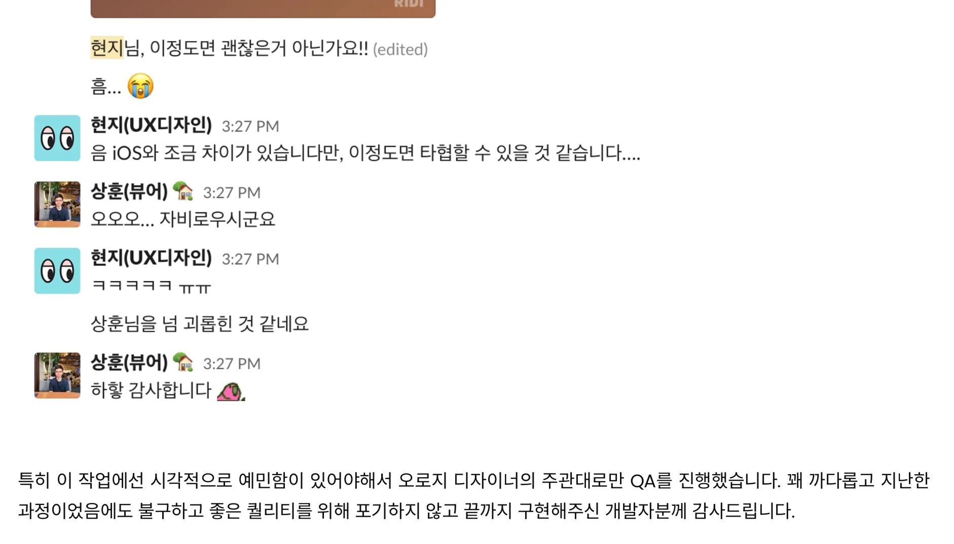 - UX디자이너님의 글이었는데, 이 부분이 너무 웃겨서 캡처를 참을 수 없었슨