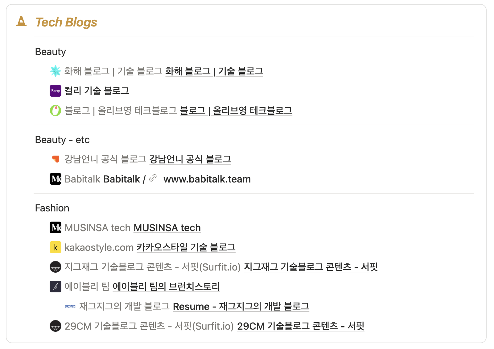 무신사/29cm, 카카오스타일/지그재그, 에이블리, 화해, 컬리, 올리브영, 강남언니, 바비톡 기술블로그를 스터디했다. 기술스펙으로 스코프를 줄이니 도메인 경계가 애매해져서, 지엽적인 실사례 위주로 공부해봤다.