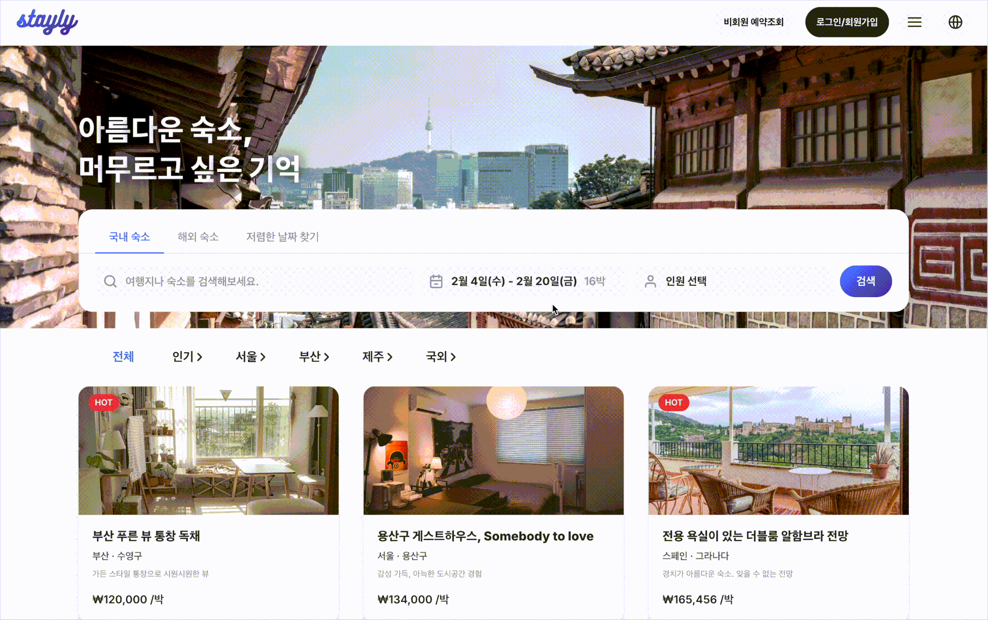 - 국가별 숙소 리스트를 볼 수 있는 별도 페이지...