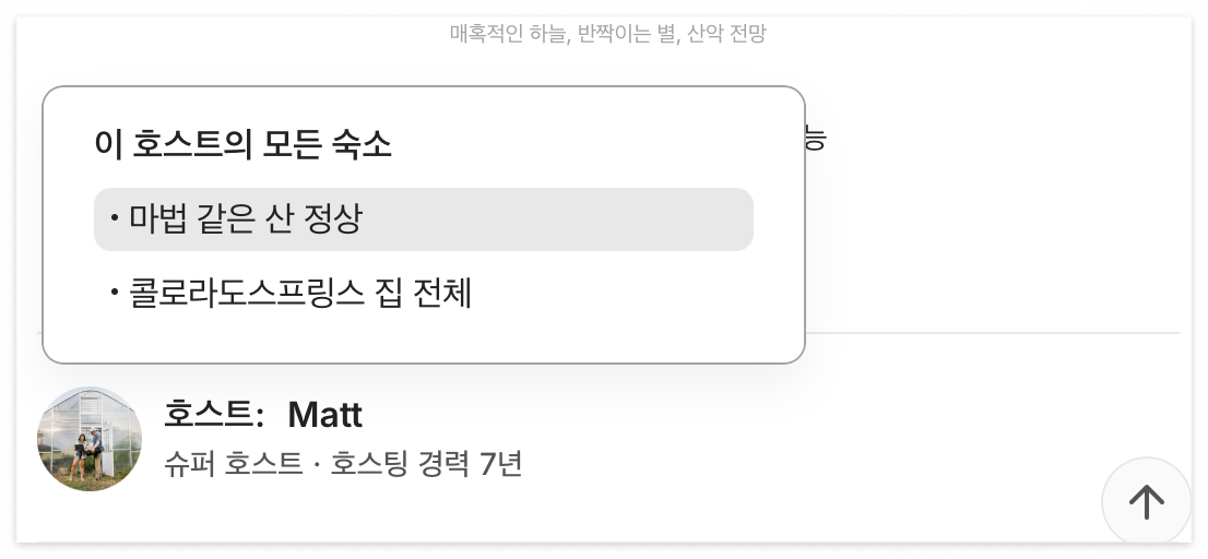 - 호스트 위에 hover하면 해당 호스트의 숙소 목록 보여주기 + 현재 페이지인 숙소에 표시하기